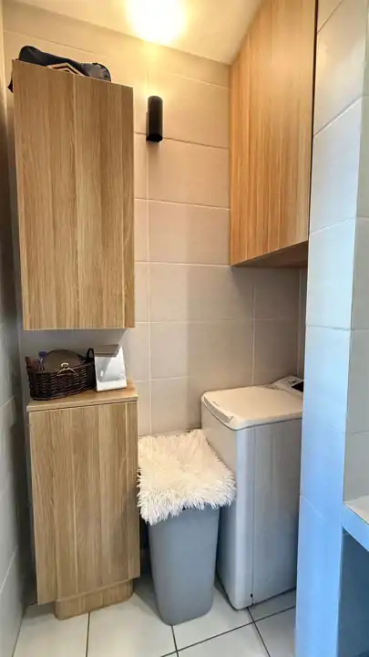 Układ mieszkania jest funkcjonalny i bardzo wygodny. Przestronny salon z dużą strefą wypoczynkową naturalnie łączy się z kuchnią i jadalnią, tworząc centralną część mieszkania – idealną zarówno do codziennego życia, jak i spotkań z bliskimi. Sypialnia zapewnia prywatność i spokój, a elegancka łazienka z prysznicem typu walk-in oraz osobne WC znacząco podnoszą komfort użytkowania. Dodatkowym atutem jest pomieszczenie gospodarcze / pralnia oraz praktyczna zabudowa w przedpokoju, która pozwala wygodnie zorganizować przestrzeń do przechowywania.