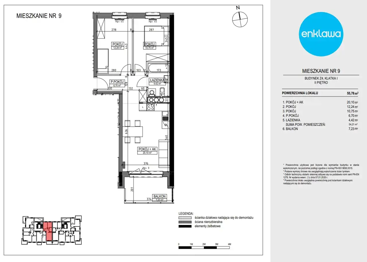 - Charakterystyka mieszkania 55.48 m2, 3 pokoje