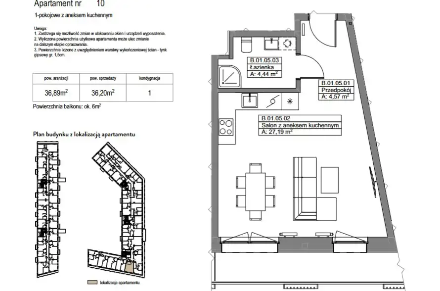 - Charakterystyka mieszkania 36.82 m2, 2 pokoje