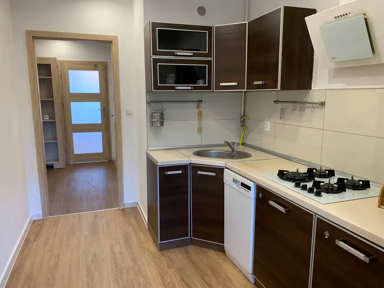 Kuchnia – ok. 9,5 m², oddzielna i ustawna, sąsiaduje z salonem, możliwość połączenia tych pomieszczeń.