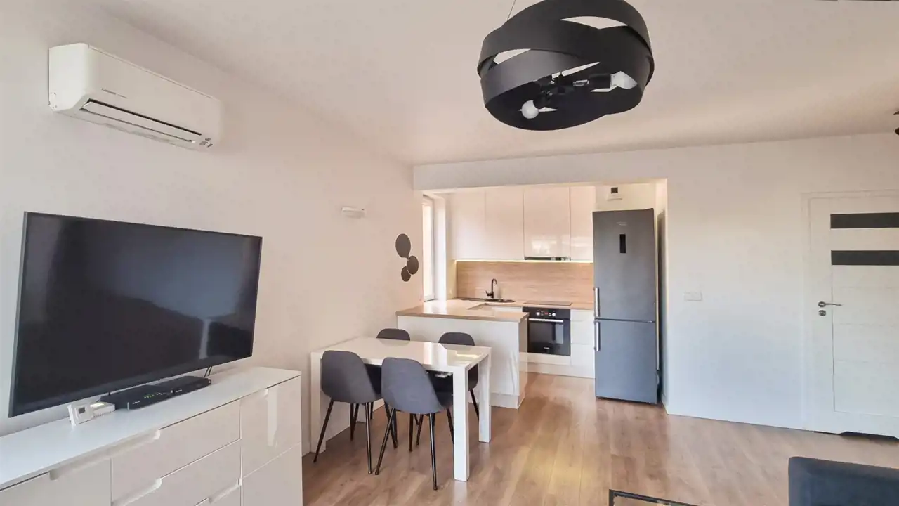 Mieszkanie jest jasne, przestronne w bardzo dobrym stanie, w pełni umeblowane – gotowe do natychmiastowego wprowadzenia się lub wynajmu bez dodatkowych nakładów, bez potrzeby ponoszenia dodatkowych kosztów. Dodatkowym atutem jest nowoczesny system inteligentnego domu (smart home), który umożliwia zdalne sterowanie oświetleniem i klimatyzacją za pomocą smartfona, co zapewnia wygodę i oszczędność energii.