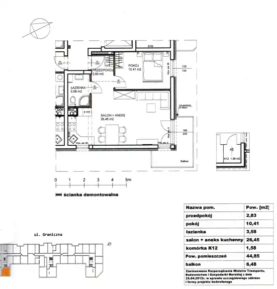 - Charakterystyka mieszkania 44.84 m2, 2 pokoje