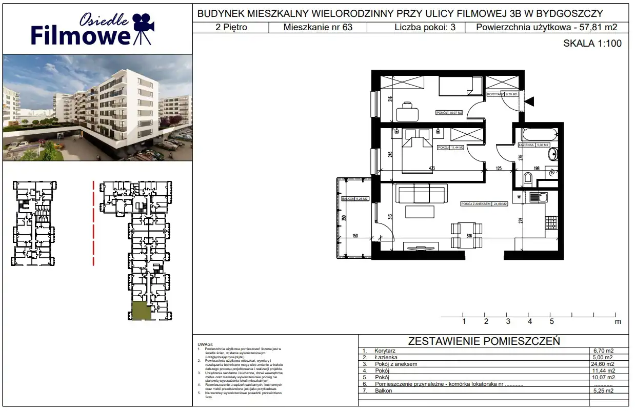 - Charakterystyka mieszkania 57.81 m2, 3 pokoje