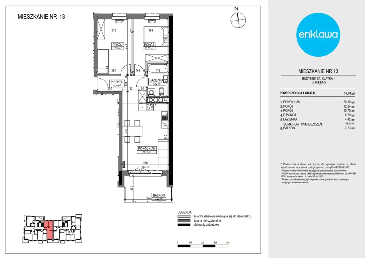 Dodatkowo przynależy balkon o pow. 7,23 m2