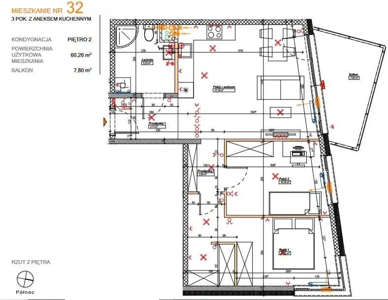 - Charakterystyka mieszkania 60.24 m2, 3 pokoje