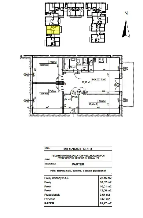 - Charakterystyka mieszkania 61.47 m2, 4 pokoje
