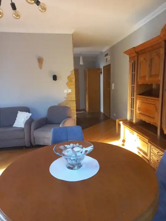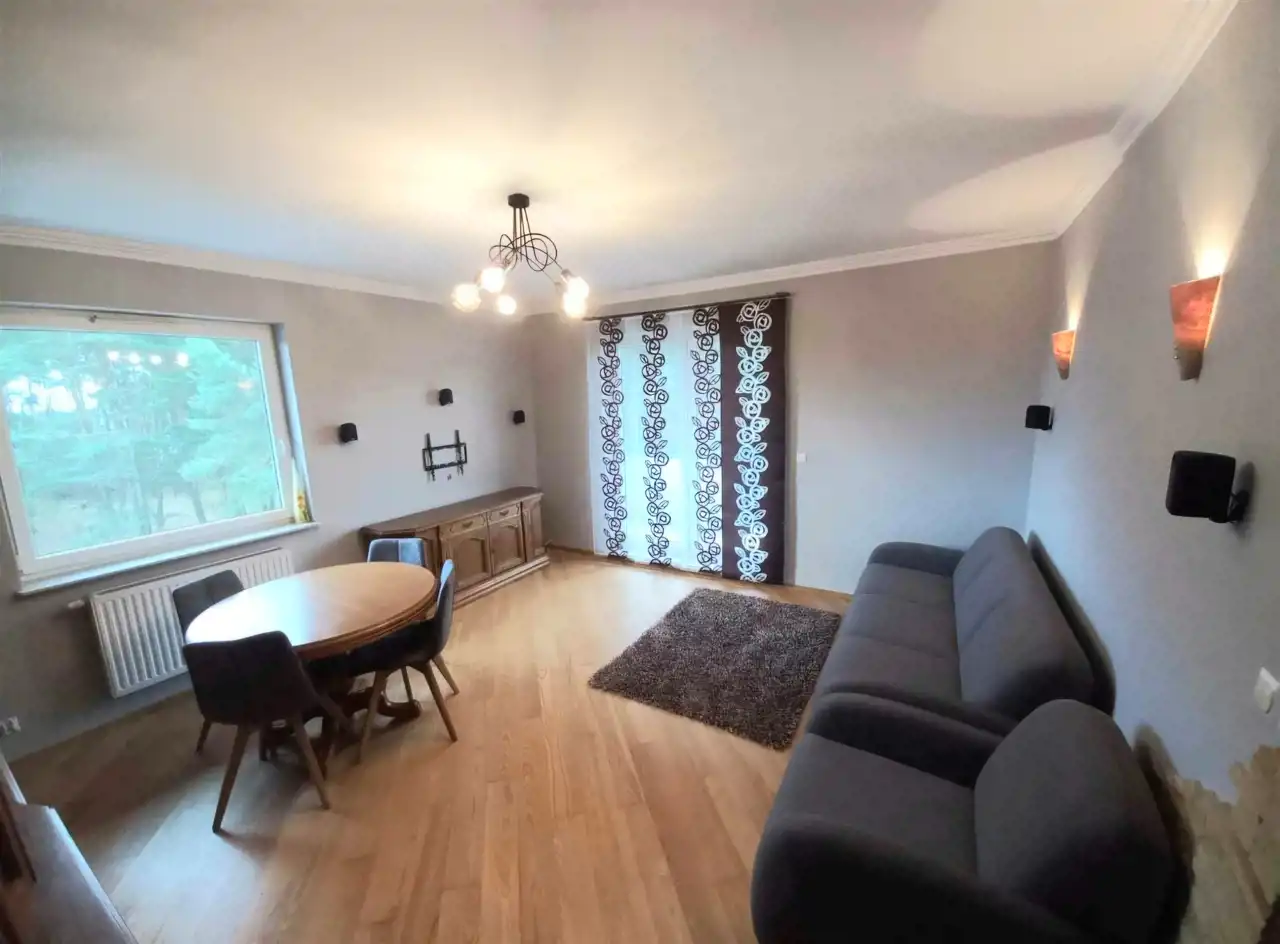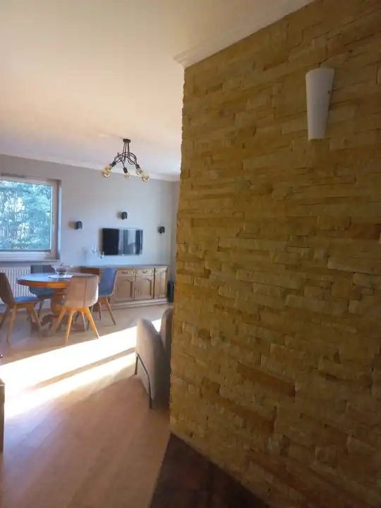 Prezentowane mieszkanie, w przepięknej lokalizacji, tuż obok lasu, w klimacie drewna i kamienia. Salon z wyjściem na przestronny balkon o powierzchni 6m2, w którym znajduje się komplet wypoczynkowy 3-z funkcja spania + fotel, nowe rozprowadzenia kino domowego 5.1. W sypialni wygodne łóżko 180x200 z materacem, szafa ,podłogi drewno jesion.
