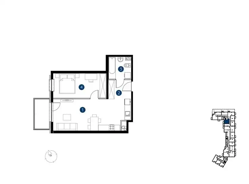 - Charakterystyka mieszkania 46.57 m2, 2 pokoje