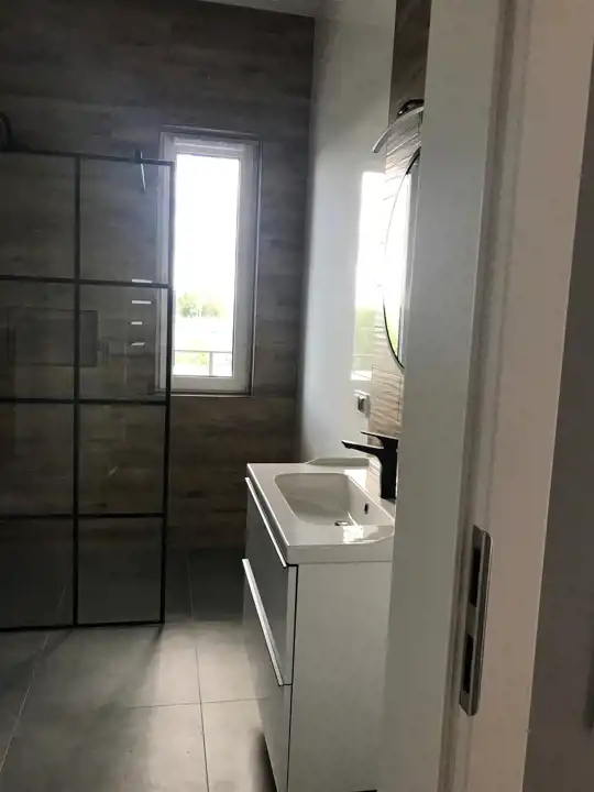 W aneksie nowoczesne meble, sprzęty AGD, łazienka po remoncie z kabiną prysznicową. Na wyposażeniu pralka plus suszarka.