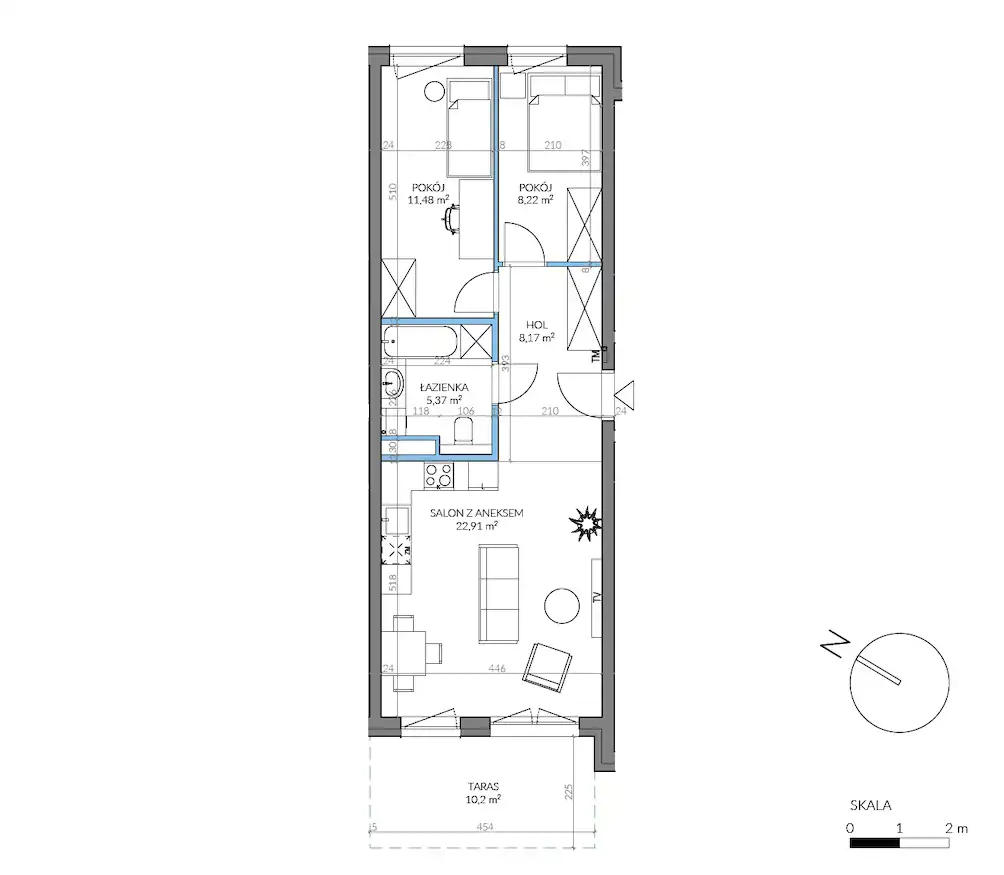 Prezentowane mieszkanie ma 56,22 m2 i składa się z: