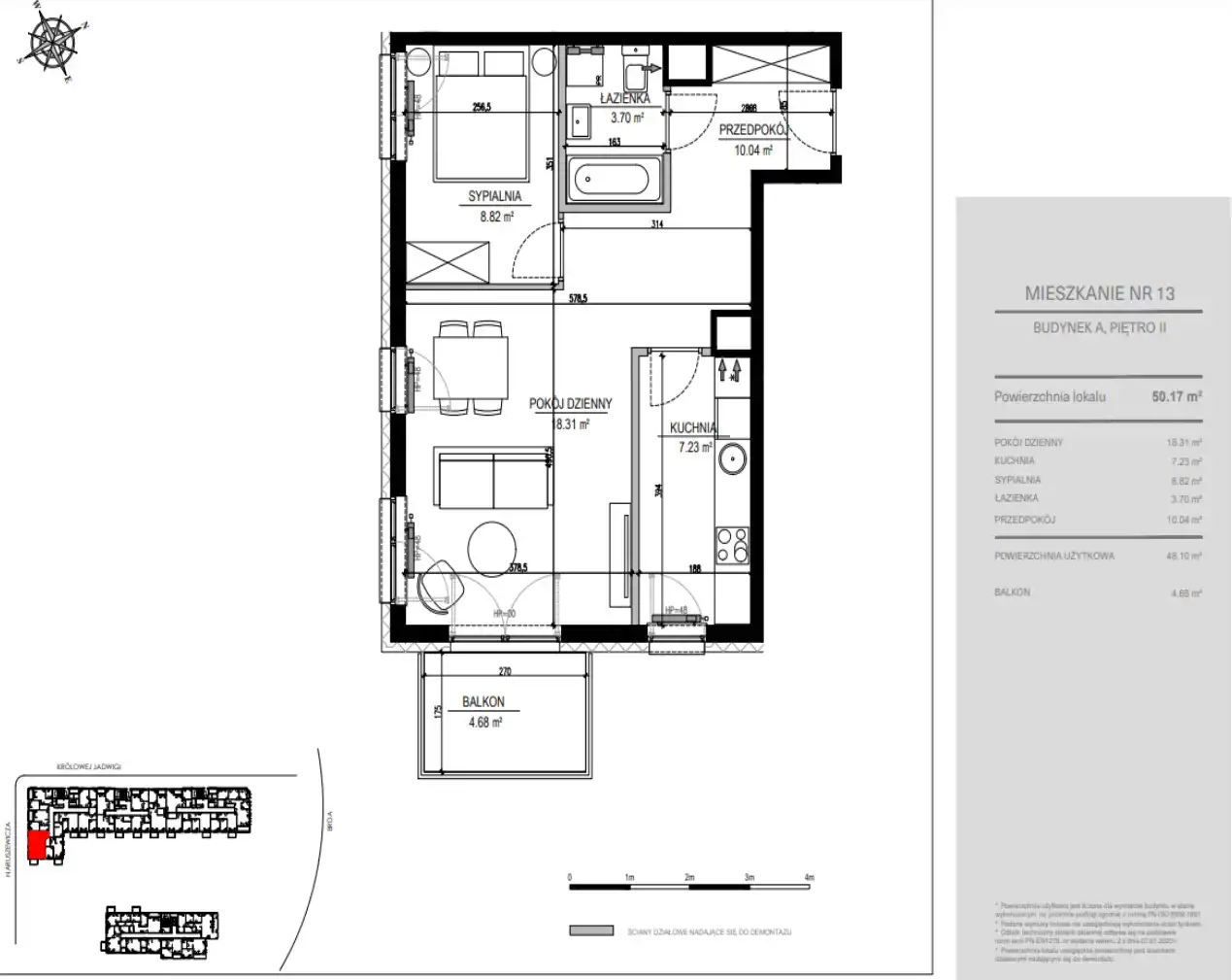 - Charakterystyka mieszkania 48.08 m2, 2 pokoje