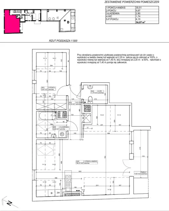 - Charakterystyka mieszkania 56.07 m2, 2 pokoje