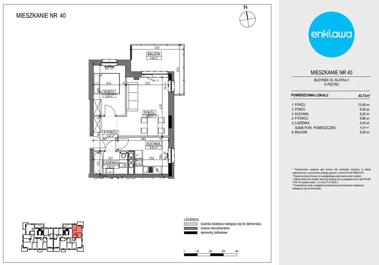 - Charakterystyka mieszkania 55.44 m2, 3 pokoje