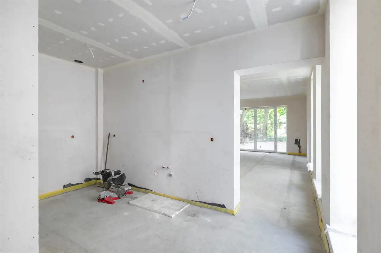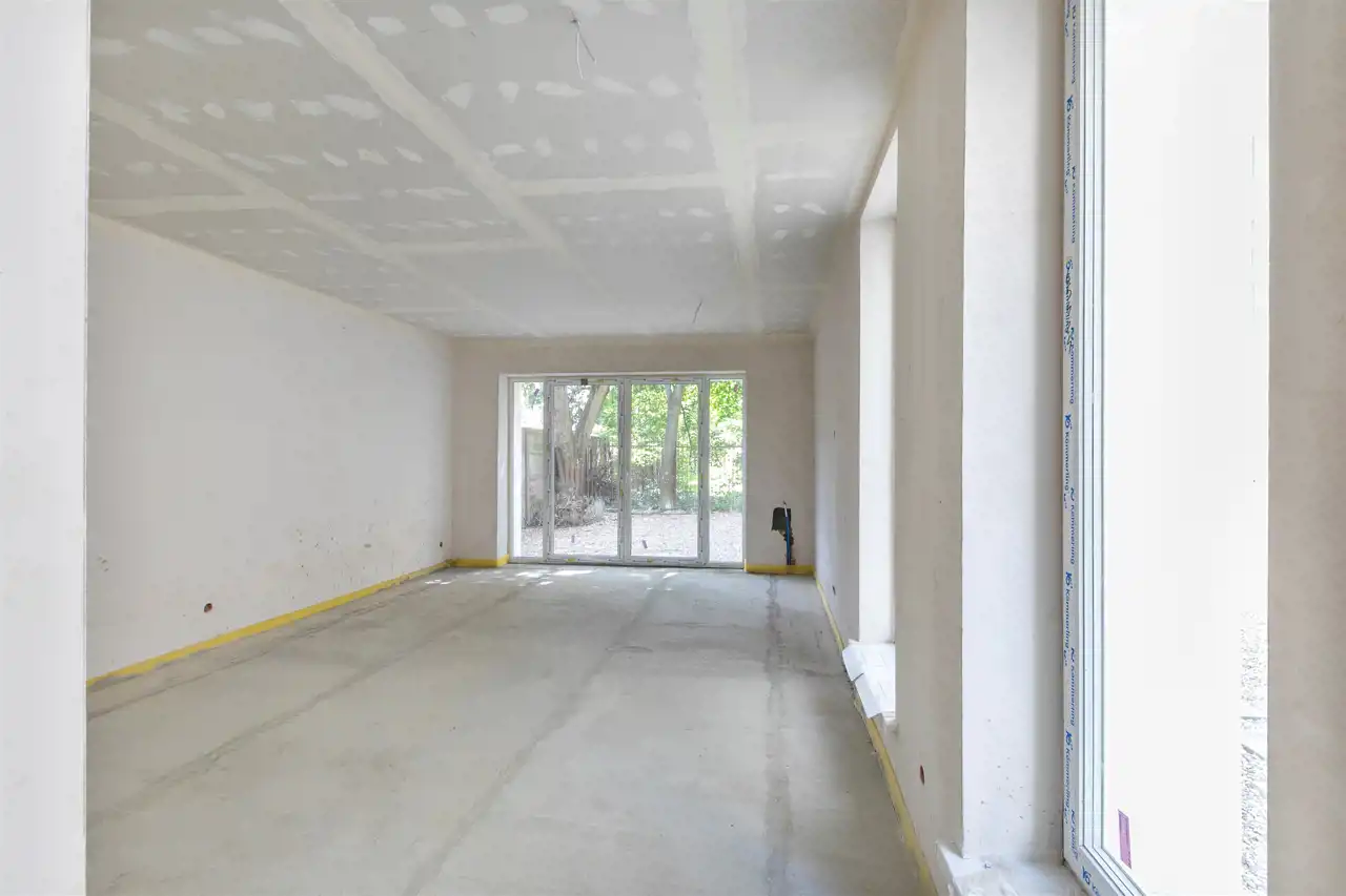 Parter (45,22 m2) - duży salon z szerokim wyjściem (drzwi francuskie) do własnego ogródka, kuchnia, łazienka z wc, wysokość pomieszczeń - 2,68 m, (istnieje możliwość przeniesienia kuchni do salonu);