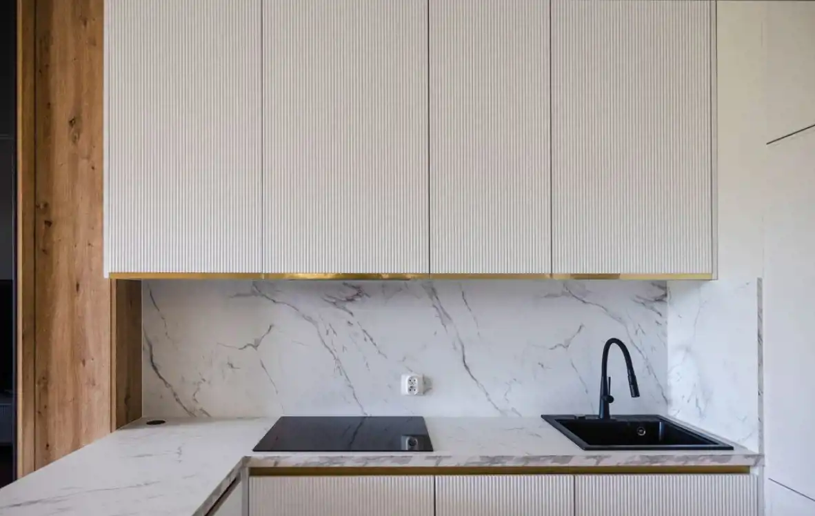 - aneks kuchenny w pełni wyposażony - zabudowa stolarska indywidualna z kompletnym wyposażeniem: okap kuchenny, lodówka, piekarnik, mikrofala, płyta indukcyjna, zmywarka. Komplet mebli na cichych domykach.