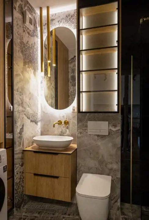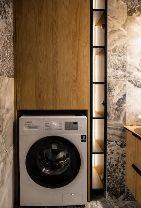 - łazienka "z charakterem", w wysokiej jakości wykończeniu, ze strefą prysznicową walk-in, komplet mebli na zamówienie, pralka.