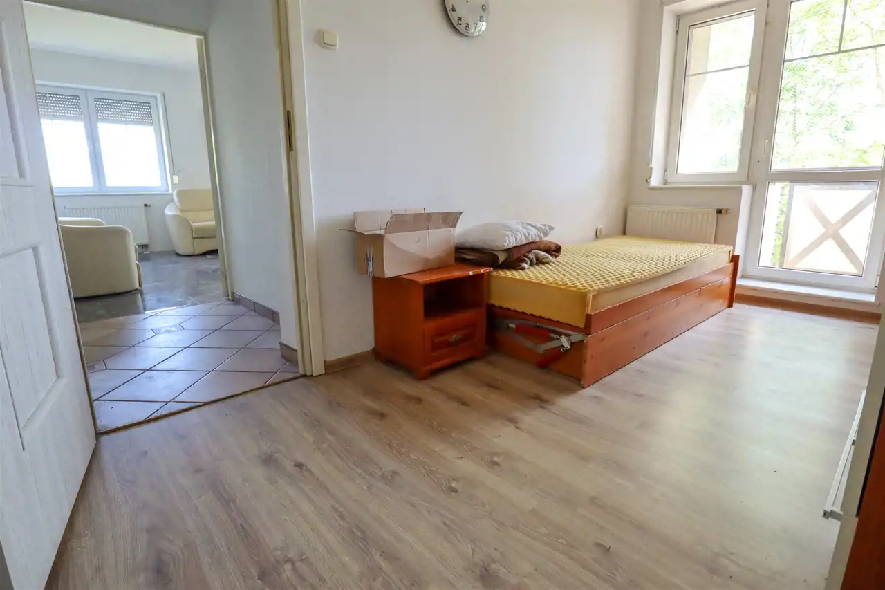 Mieszkanie znajduje się na pierwszym piętrze niskiego bloku z 1999 roku. Przestrzeń została starannie zaprojektowana, co daje poczucie komfortu i wygody. Duże, słoneczne pokoje zachęcają do relaksu, a oddzielna kuchnia pozwala na swobodne przygotowywanie ulubionych potraw. Mieszkanie posiada łazienkę z wanną oraz osobną toaletę, co zwiększa komfort użytkowania