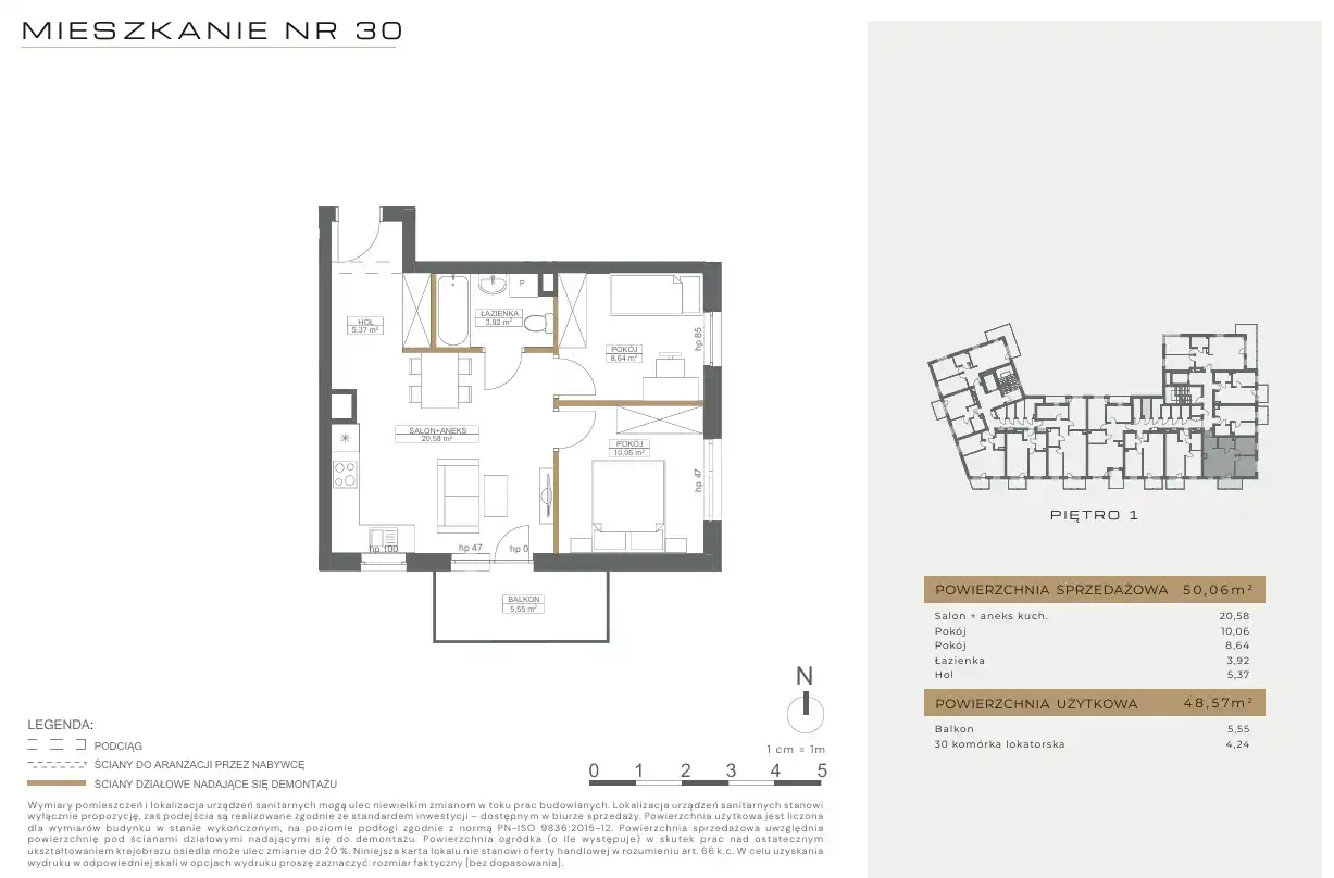 - Charakterystyka mieszkania 50.06 m2, 3 pokoje