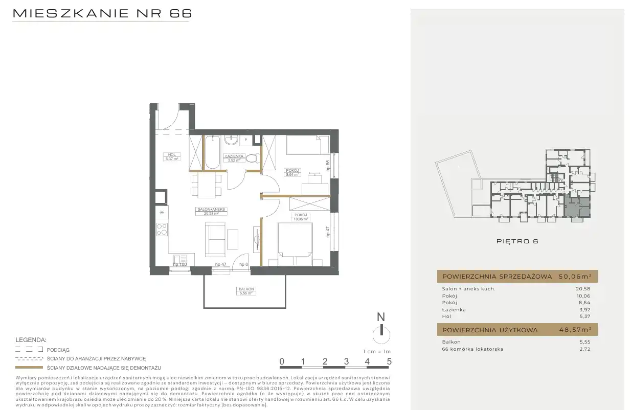 - Charakterystyka mieszkania 50.06 m2, 3 pokoje
