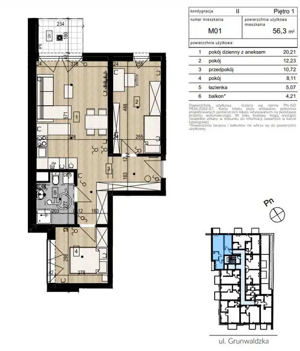 - Charakterystyka mieszkania 56.3 m2, 3 pokoje