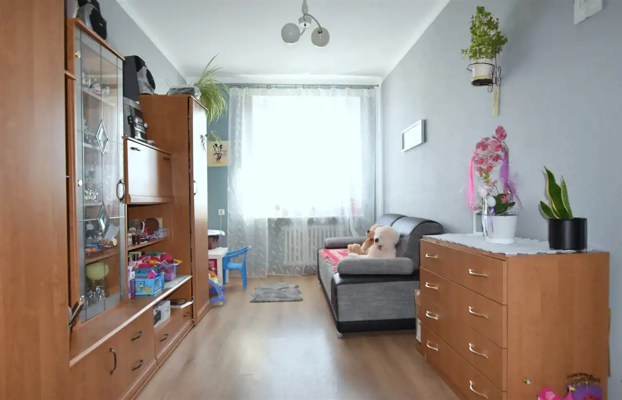 Mieszkanie składa się z czterech dużych pokoi, osobnej kuchni i łazienki z wc. W pokojach na podłogach panele, na ścianach gładzie.