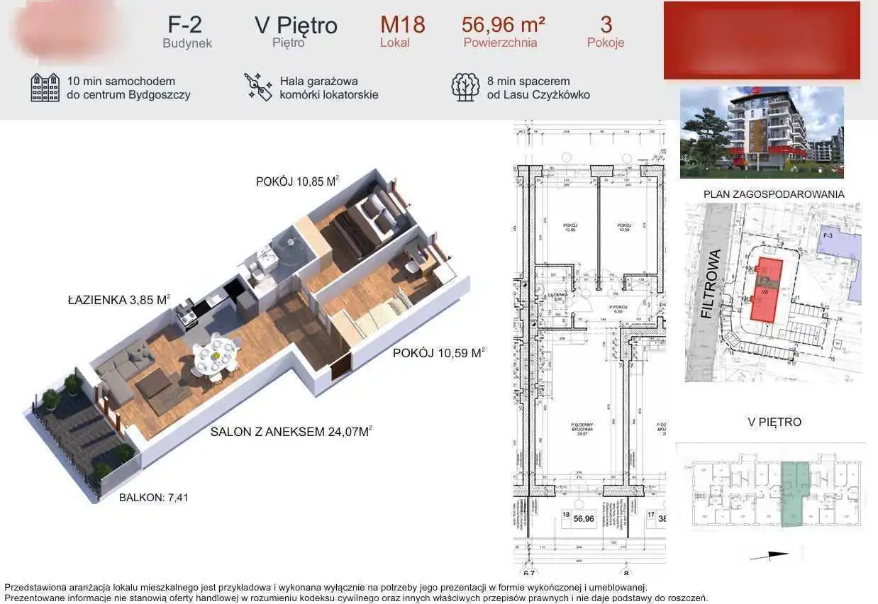 - Charakterystyka mieszkania 56.96 m2, 3 pokoje