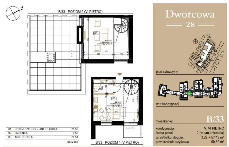 - Charakterystyka mieszkania 50.62 m2, 2 pokoje