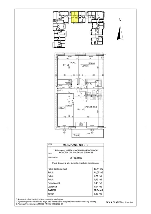 - Charakterystyka mieszkania 57.34 m2, 4 pokoje