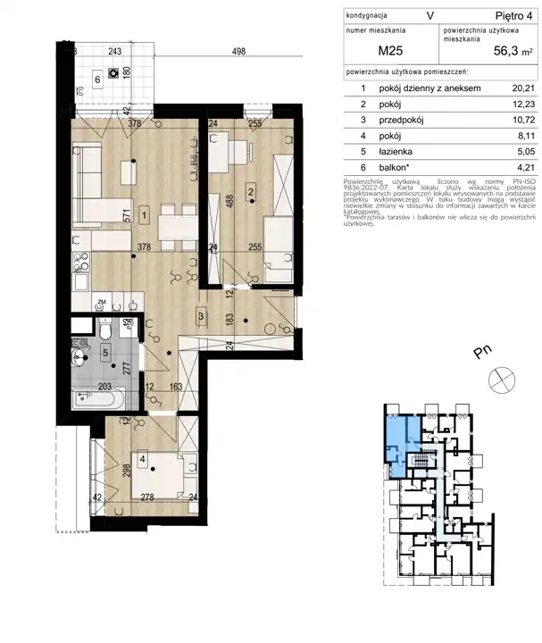 - Charakterystyka mieszkania 56.3 m2, 3 pokoje