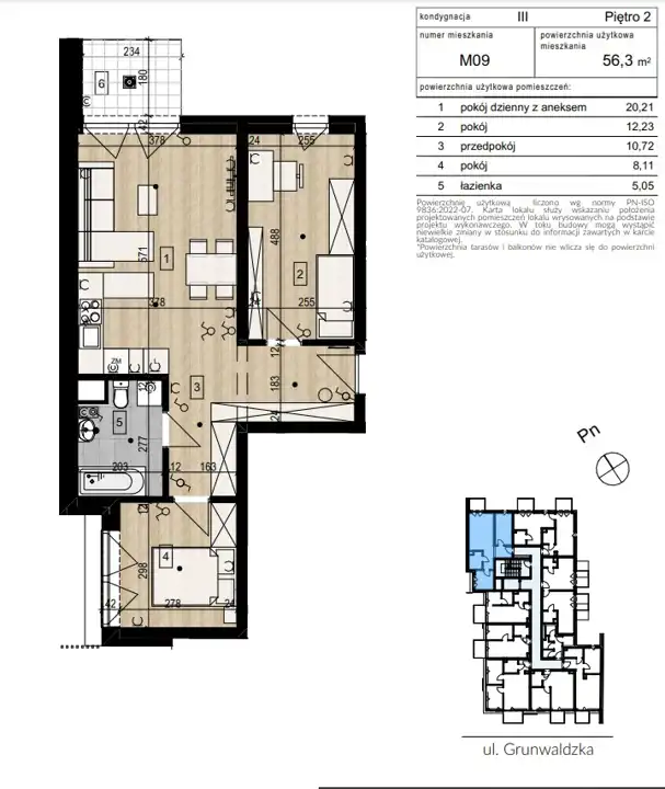 - Charakterystyka mieszkania 56.3 m2, 3 pokoje