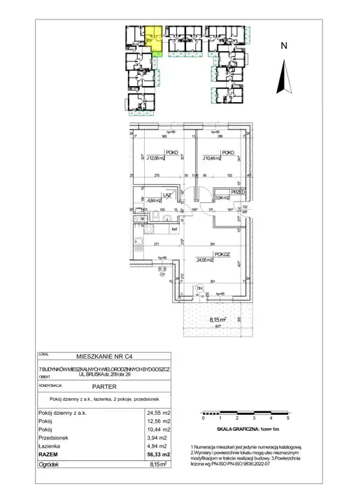- Charakterystyka mieszkania 56.33 m2, 3 pokoje