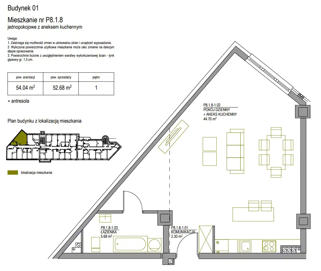 - Charakterystyka mieszkania 52.46 m2, 1 pokój