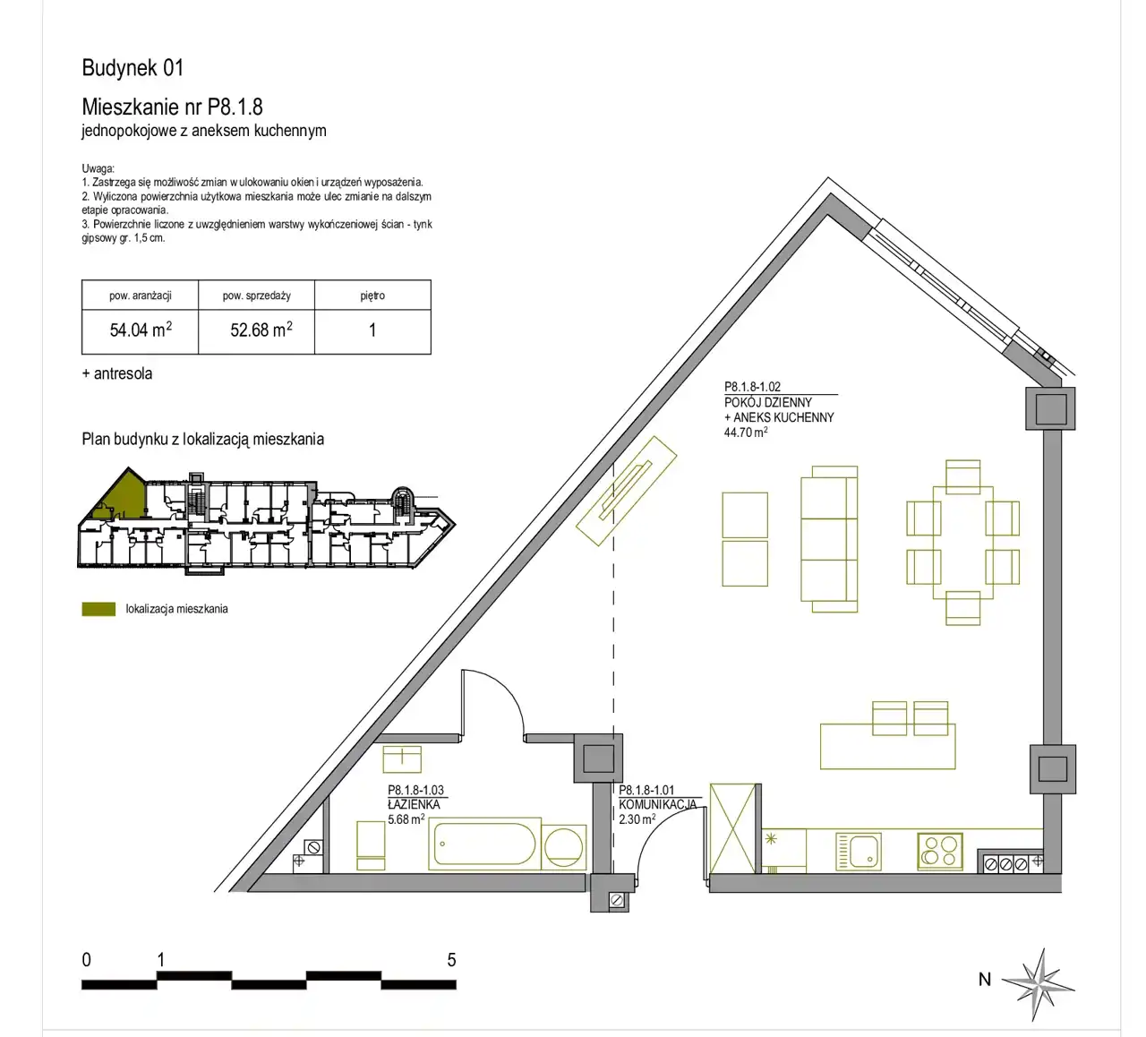 - Charakterystyka mieszkania 52.63 m2, 1 pokój
