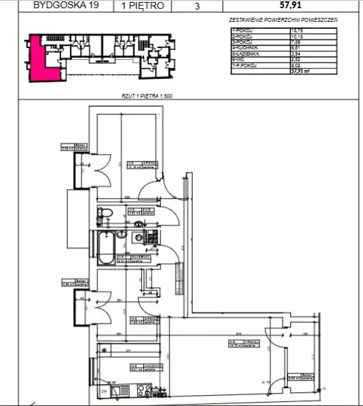 - Charakterystyka mieszkania 57.91 m2, 3 pokoje