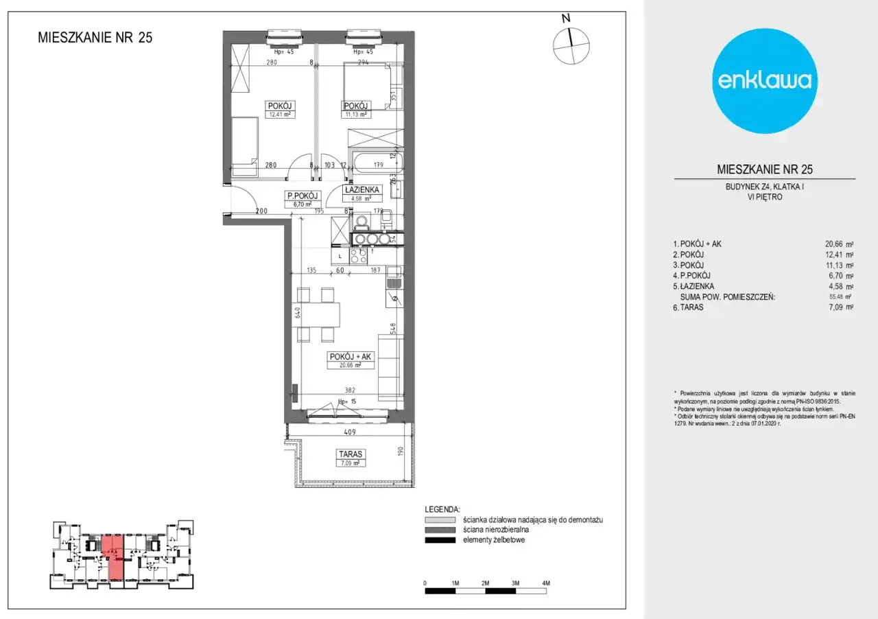 - Charakterystyka mieszkania 55.48 m2, 3 pokoje