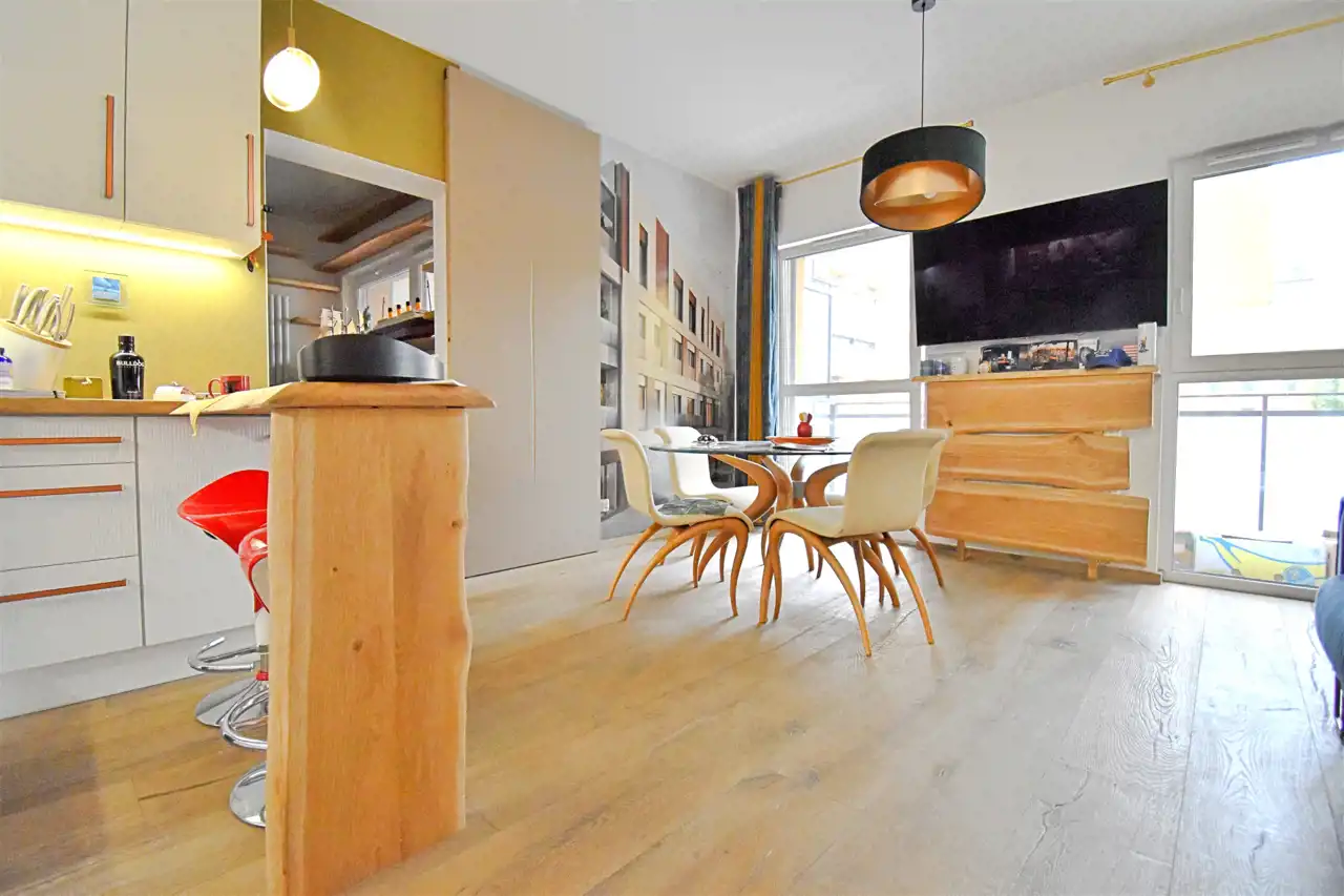 - salonu z aneksem kuchennym z wyjściem na balkon
