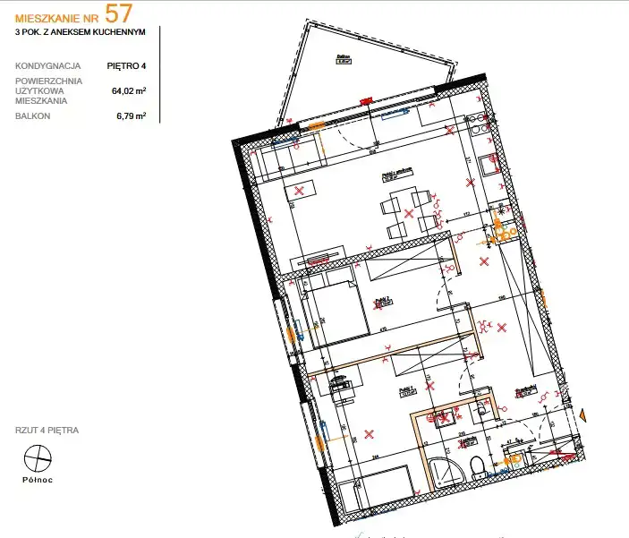 - Charakterystyka mieszkania 64.22 m2, 3 pokoje
