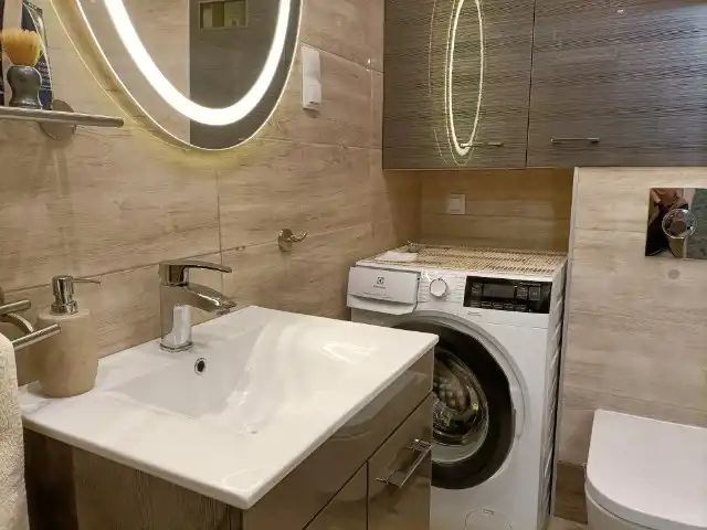 - Duża łazienka z wanną: 5,5 m² (możliwość zainstalowania prysznica)