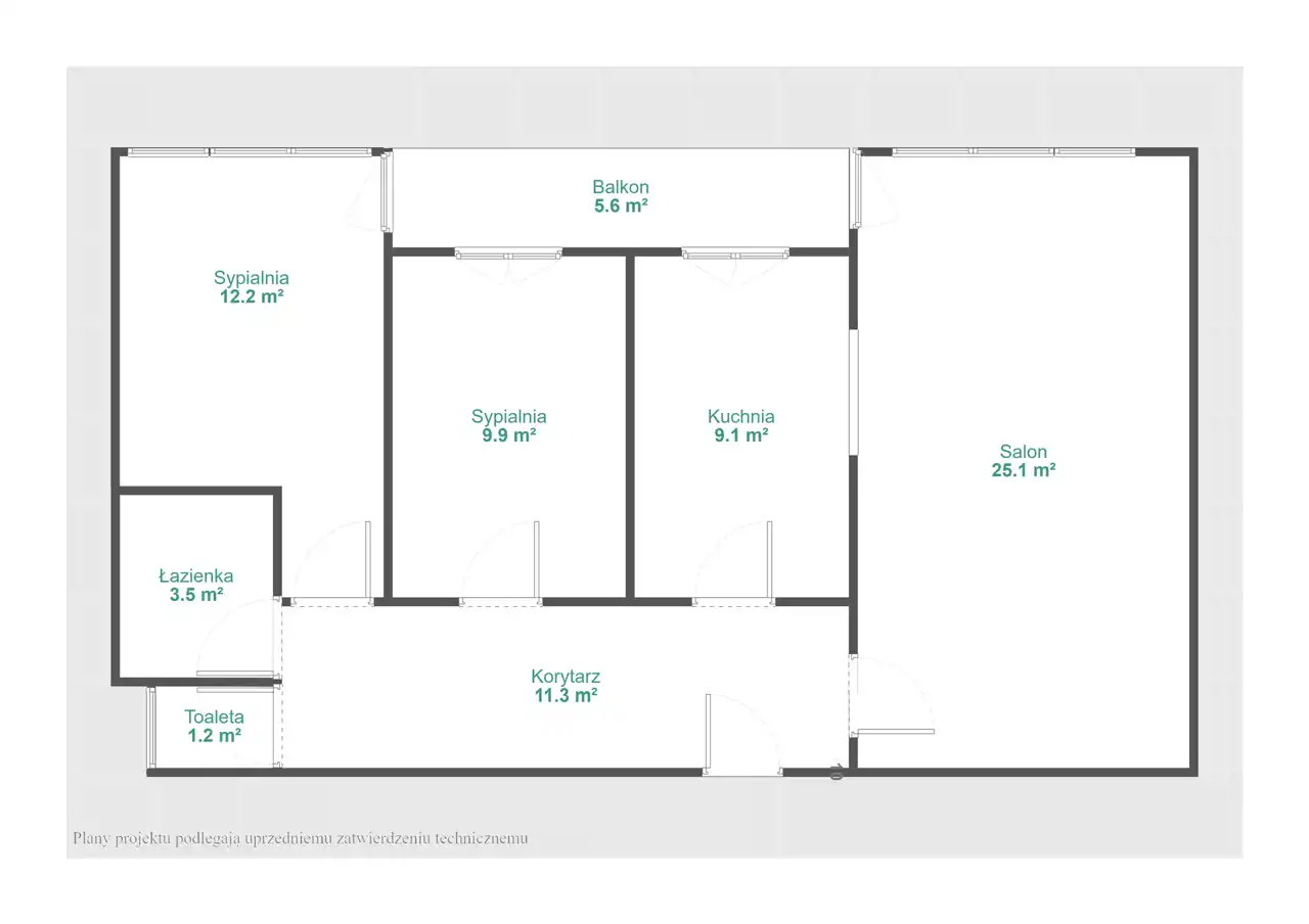 Mieszkanie składa się z przestronnego salonu z dużymi oknami, które zapewniają doskonałe doświetlenie wnętrza. Przylegająca do salonu kuchnia została zaprojektowana z myślą o komfortowej komunikacji, oferując dostęp zarówno od strony salonu, jak i przedpokoju. Dwie oddzielne sypialnie gwarantują prywatność i wygodę, a jedna z nich posiada wyjście na imponujący balkon, idealny do odpoczynku po długim dniu. Kompleksową funkcjonalność zapewniają osobna łazienka z wanną oraz dodatkowa toaleta. Duży przedpokój dodaje przestrzeni i zaprasza do wnętrza mieszkania.