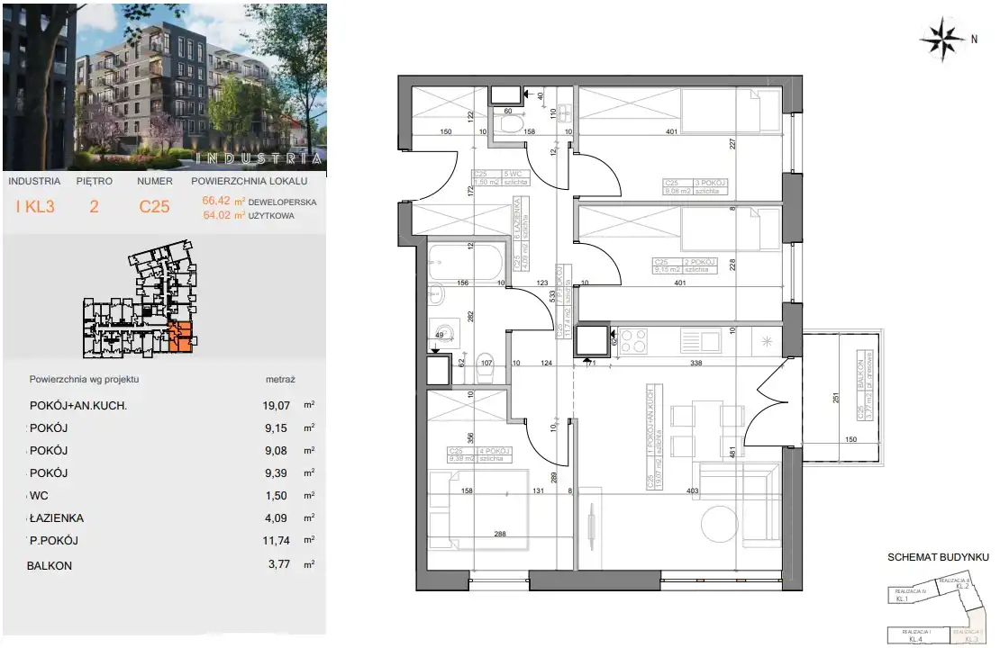 - Charakterystyka mieszkania 64.02 m2, 4 pokoje