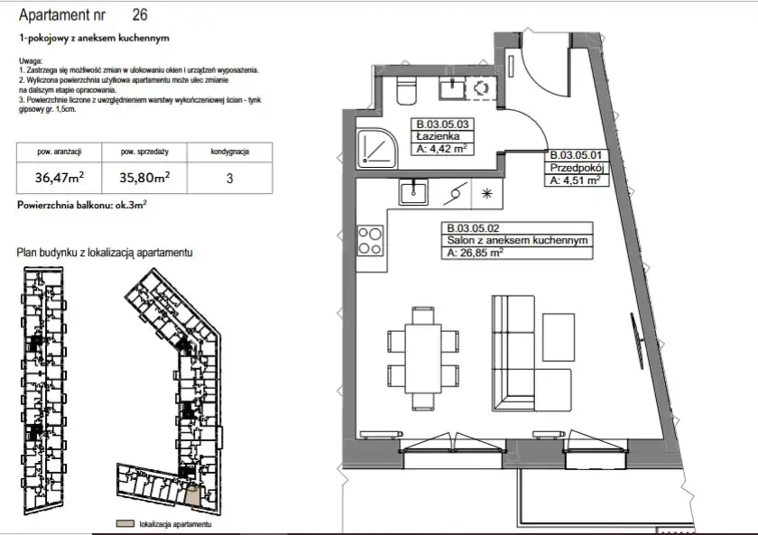 - Charakterystyka mieszkania 35.8 m2, 1 pokój