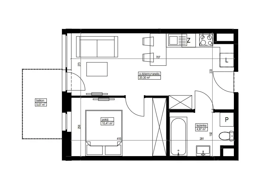 oraz dodatkowo balkon o pow. 4,85 m2.