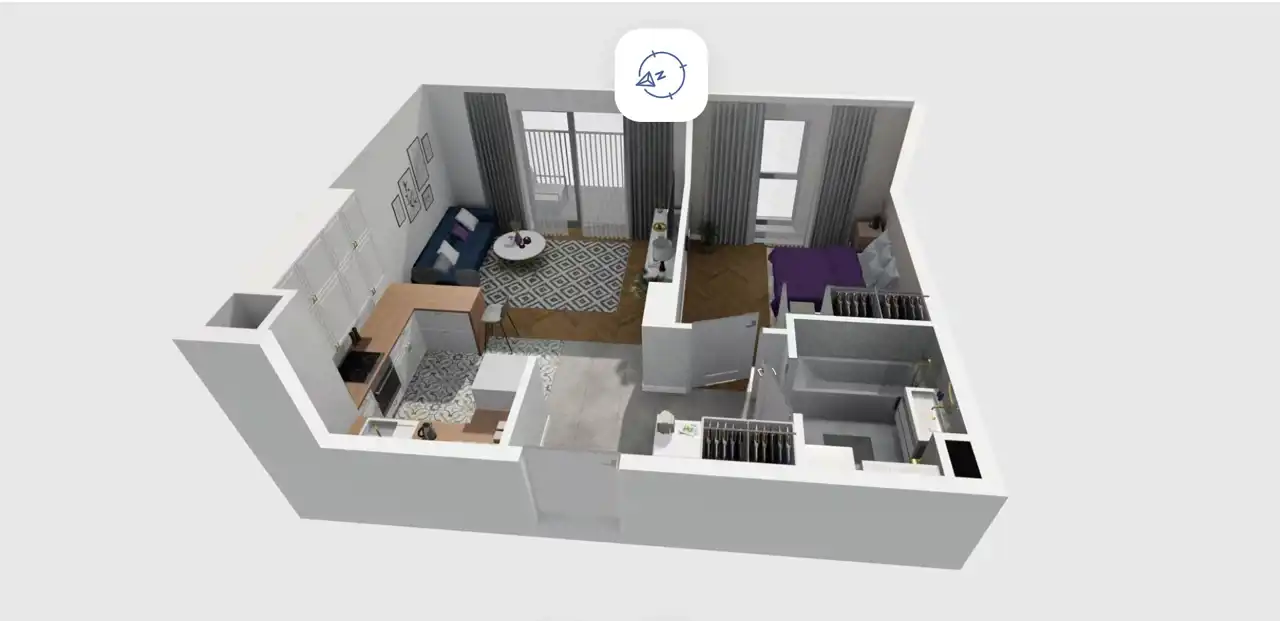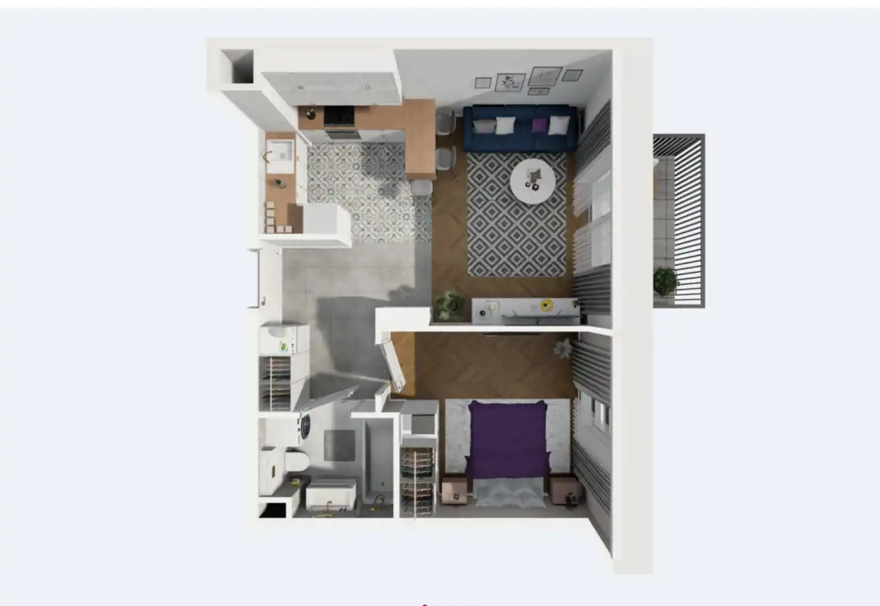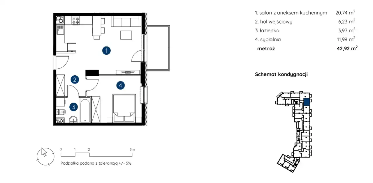 - Charakterystyka mieszkania 42.92 m2, 2 pokoje