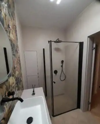łazienka w nowoczesnej aranżacji z czarnymi akcentami