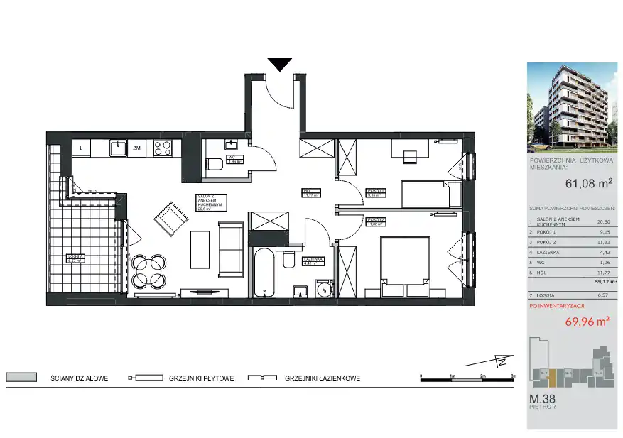 - Charakterystyka mieszkania 60.96 m2, 3 pokoje