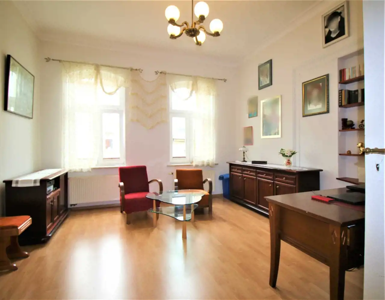 Lokal składa się z 5 przestronnych pokoi o przybliżonych powierzchniach: