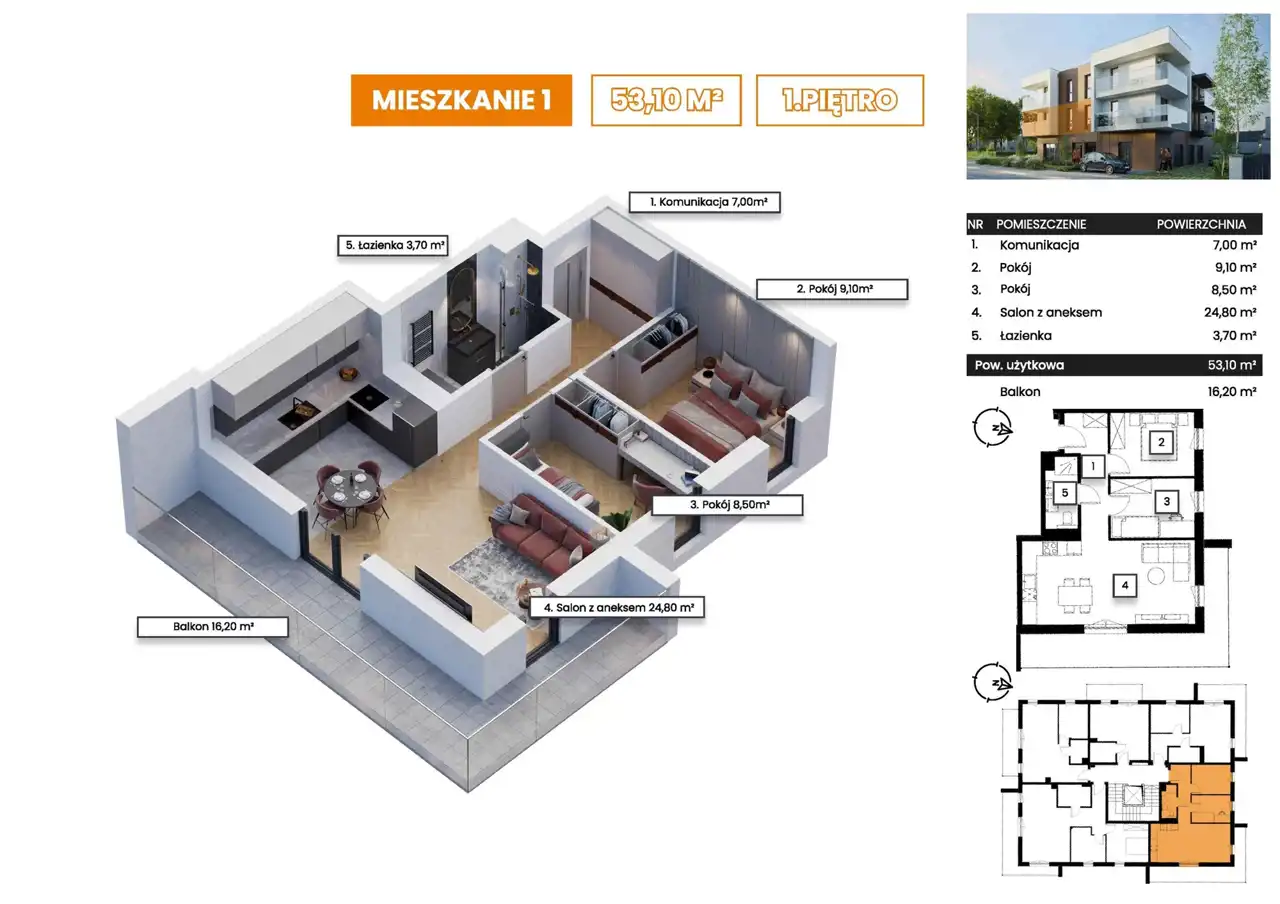 - Charakterystyka mieszkania 53.13 m2, 3 pokoje