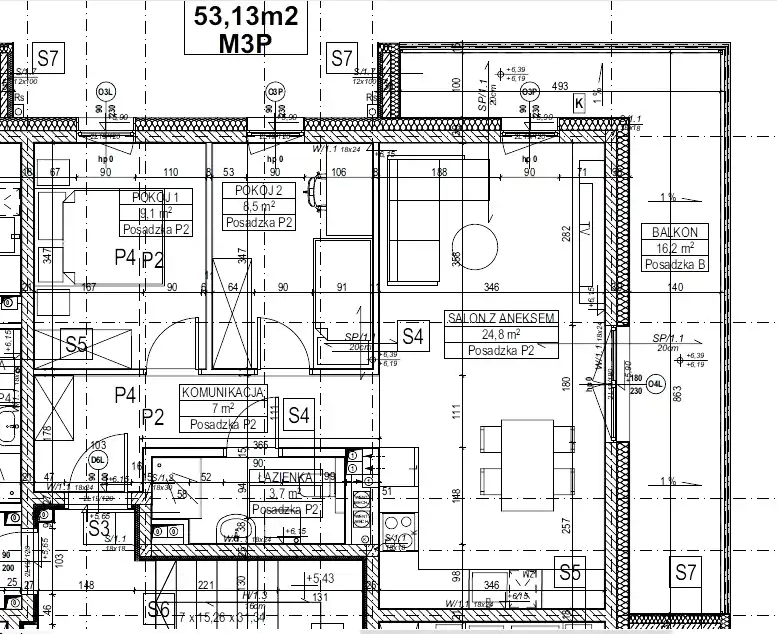 - Charakterystyka mieszkania 53.13 m2, 3 pokoje