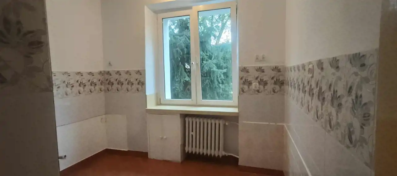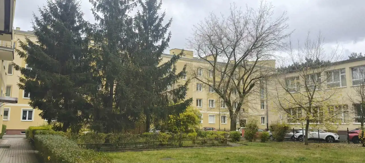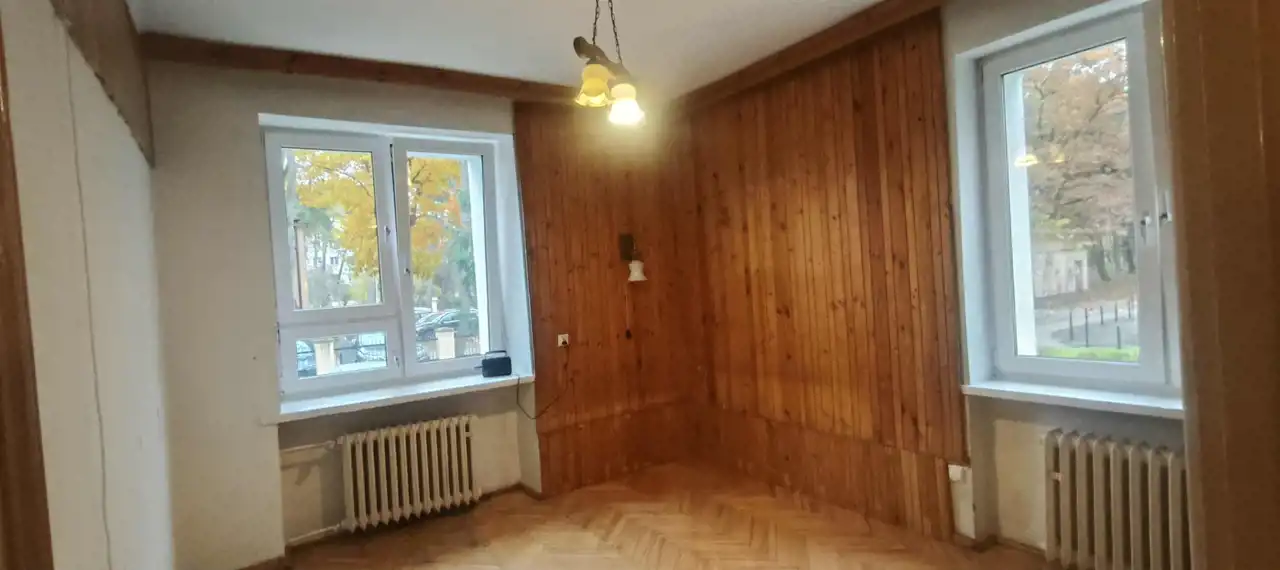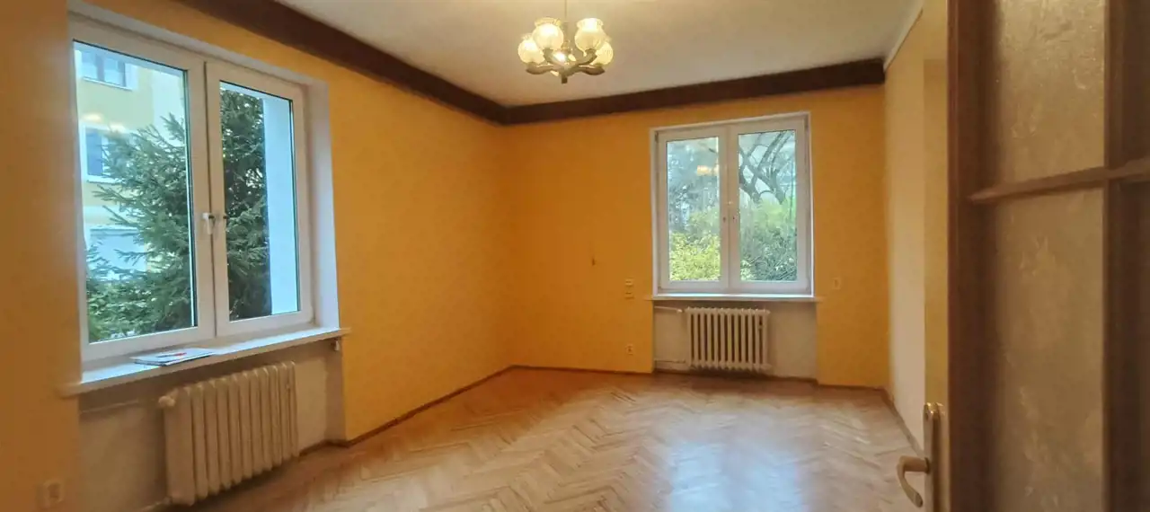 Oferuję 3-pokojowe mieszkanie na parterze bloku z lat 50-tych w pobliżu parku.