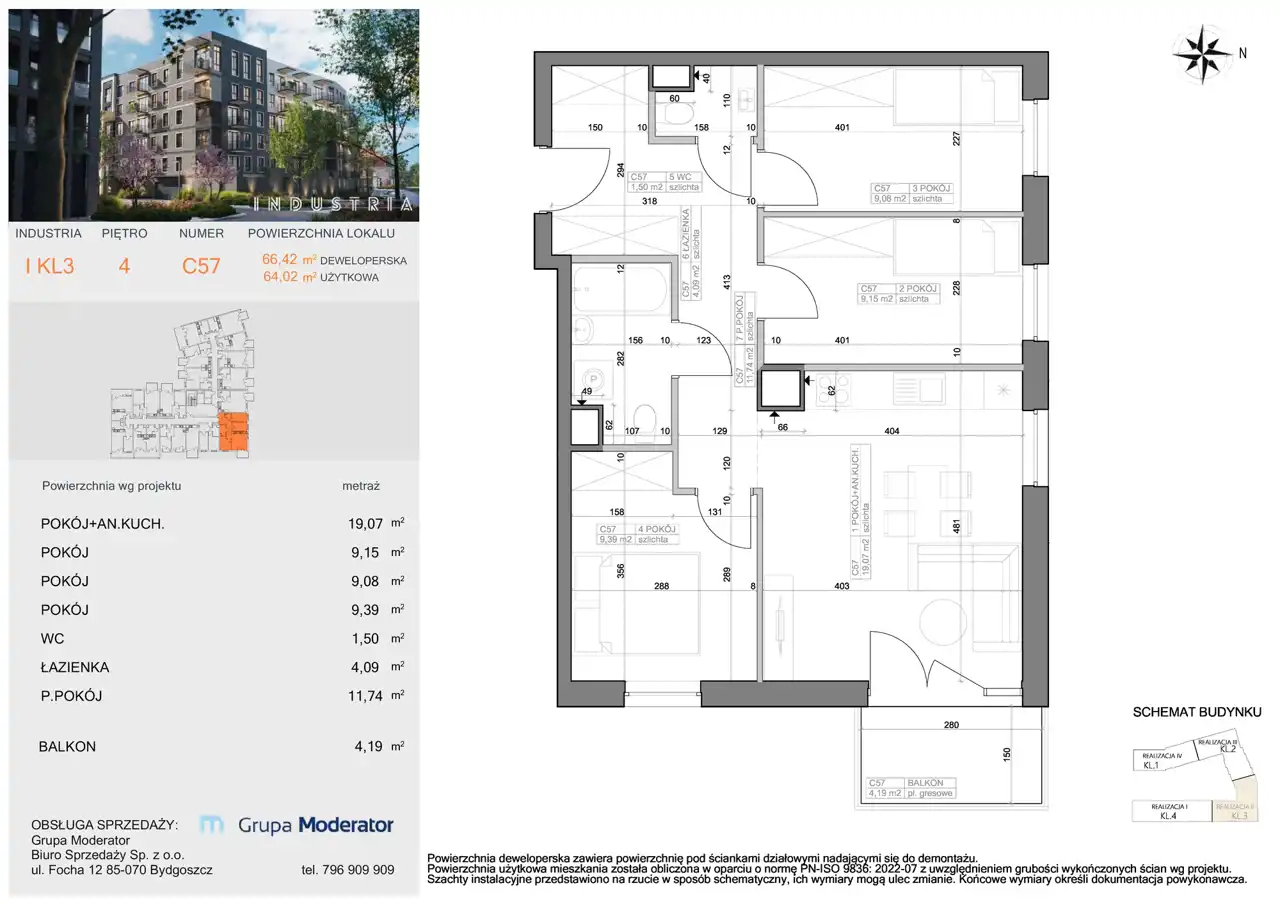 - Charakterystyka mieszkania 64.02 m2, 3 pokoje